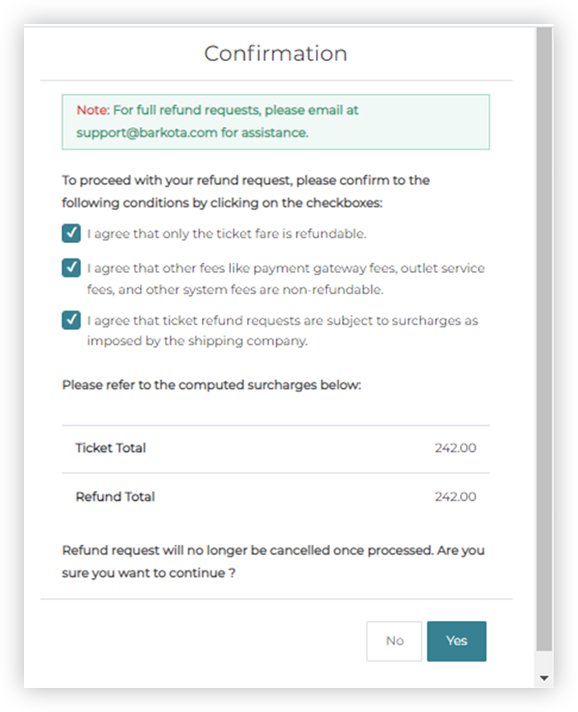 Once everything is verified, please check the Terms and Condition for confirmation, then click the checkboxes. Click Yes to continue.